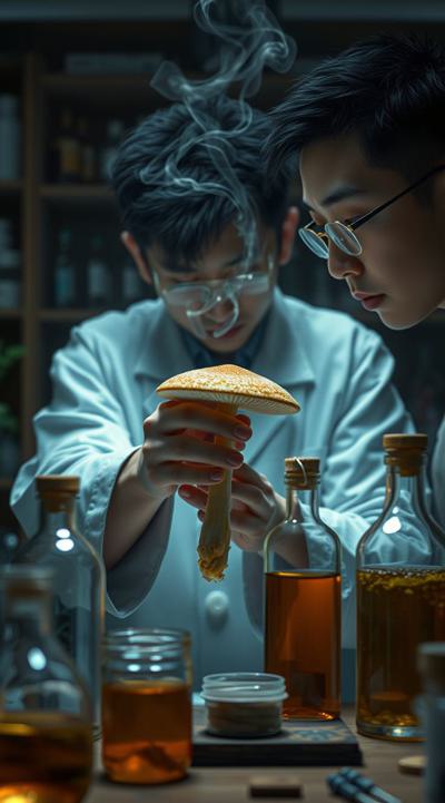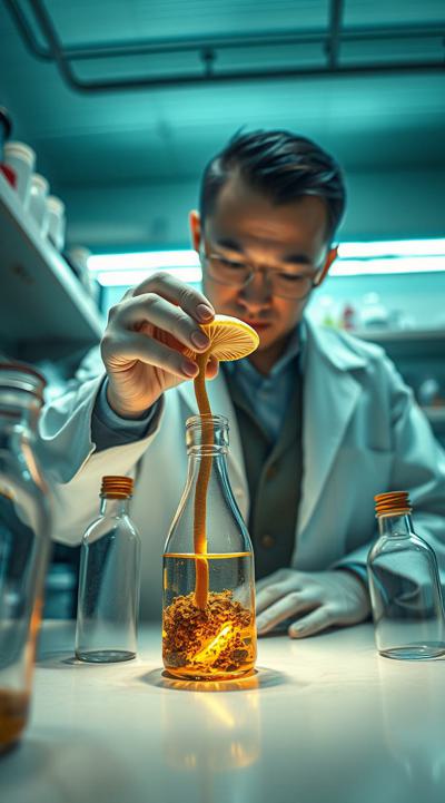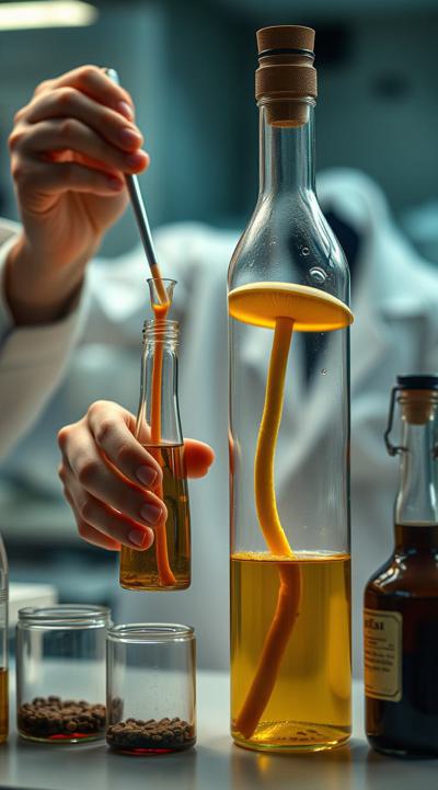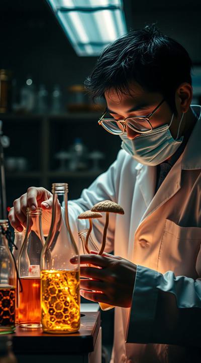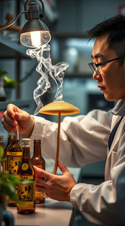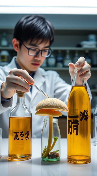 Японский ученый проводит эксперименты с бутылками. он создает в лаборатории чайный гриб