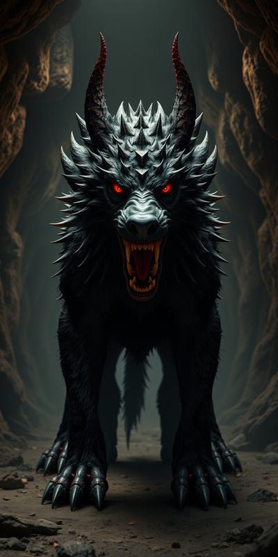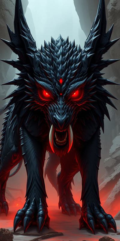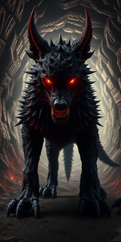 Цербер. Огромная собака с чёрной шерстью, глаза красные словно лава, всё тело усыпано острыми чёрными шипами. На лапах острые когти. В пасти острые клыки, способные разорвать любого врага. Цербер стоит в тоннелях Преисподней