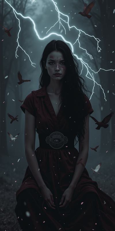 Создай обложку для книги, в которой девушка является сосудом для древней силы. За неё борются небеса и преисподняя. Её жизнь окутана тайнами, обманом и смертью. Её манит тьма. Она буквально находится в объятьях тьмы.