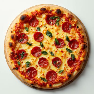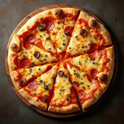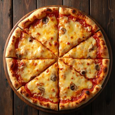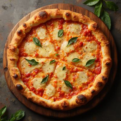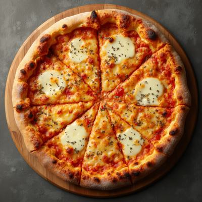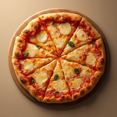 максимально реалистичная круглая пицца с сыром, вид сверху