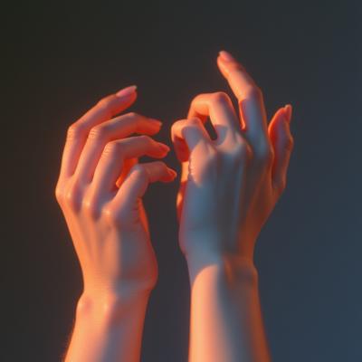 Создай референс изящных женских рук,в различных позах и контрастном освещении. Теплом и холодном.