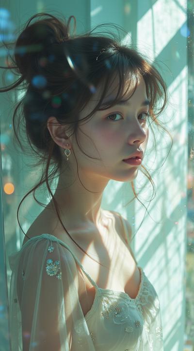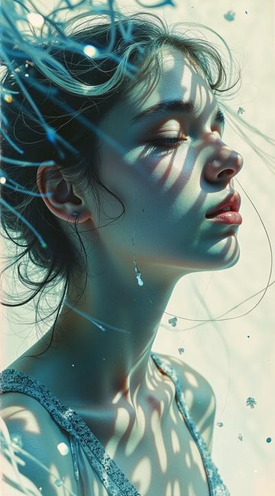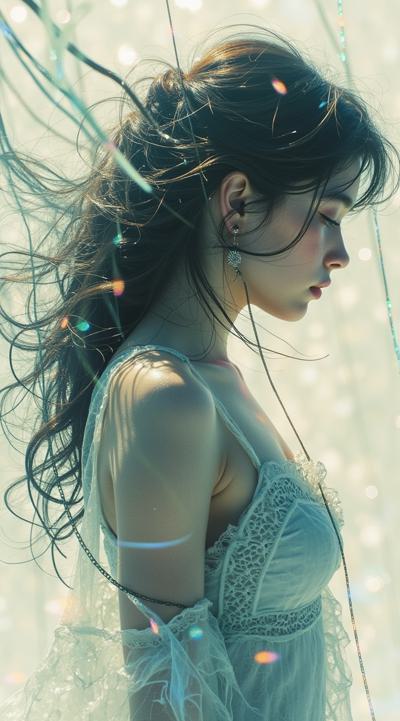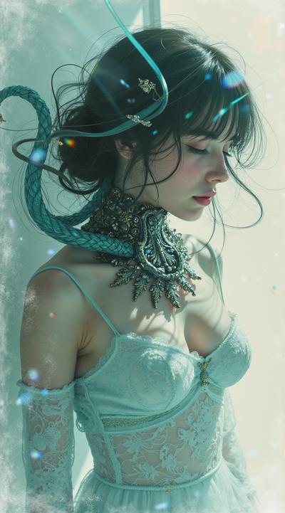 стиле Еситака Амано, HDR съемка, скетч bishoujo пытается вырваться, призрак прекрасной сциллы, нежные объятия, призрачная сущность, кристально чистое фото, эстетически утонченное искусство, пастельные цвета, металлик, искусство Дзюндзи Ито, реализм, полный рост