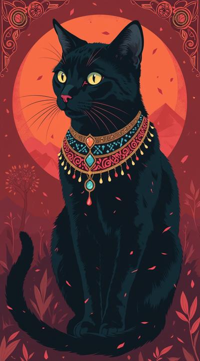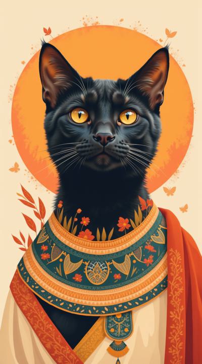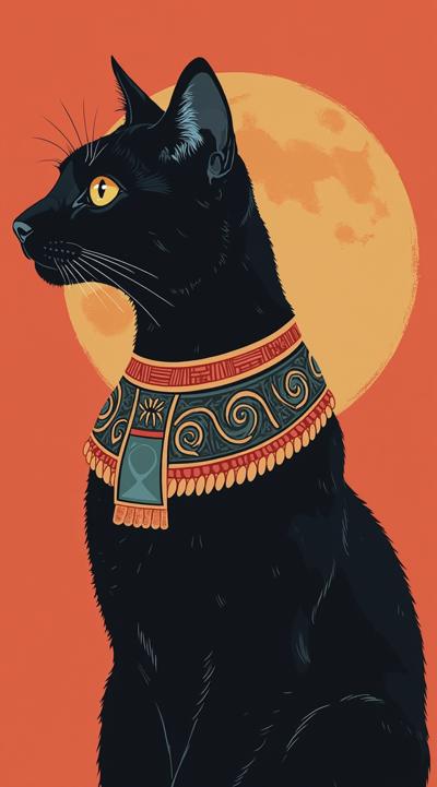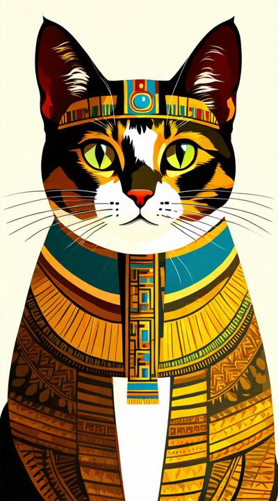 Портрет кошки в египетском стиле, flat color