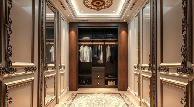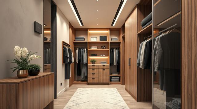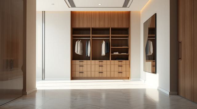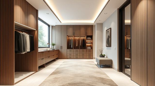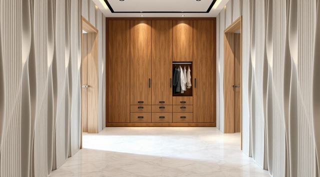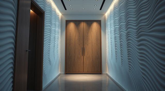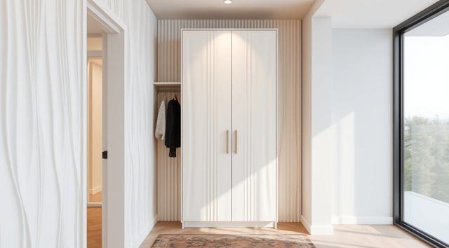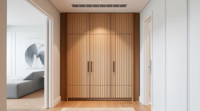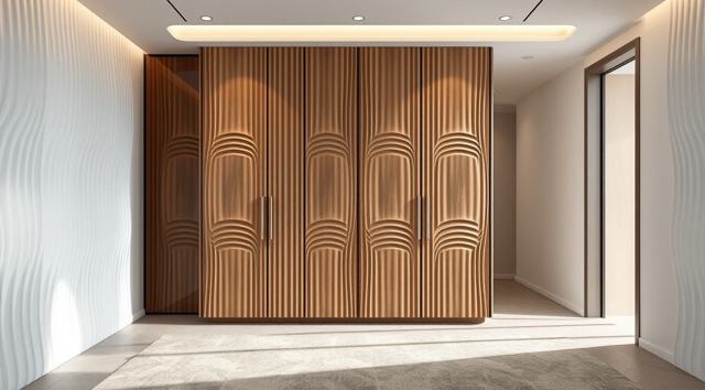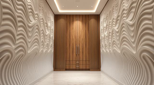 шкаф для одежды в интерьере современной прихожей с рифлеными волнообразными фасадами