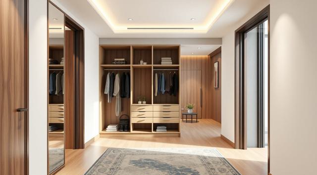 шкаф в интерьере современной прихожей от пола до потолка