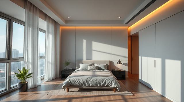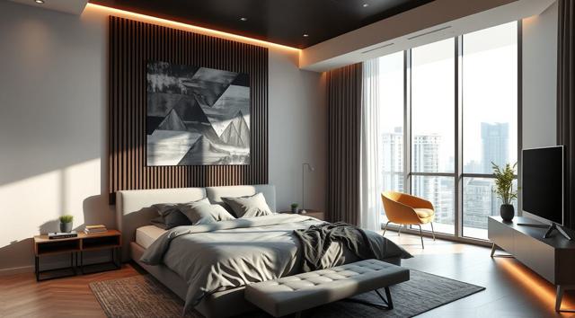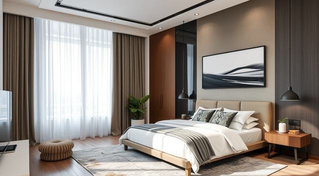 интерьер современной спальни в квартире в скандинавском стиле