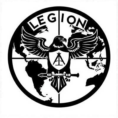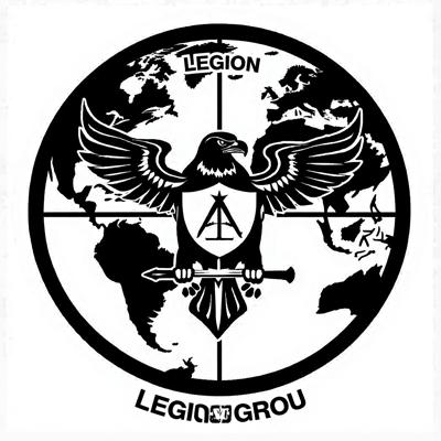 Расширь толщину линии окружности и впиши туда сверху слово LEGION, снизу слово GROUP [Уточнение для #5885919 'В центре орла вместо круга сделай щит, с тем же изображением [Уточнение для #5885915 'Сделай круг на фоне которого находится орел земным шаром [Уточнение для #5885902 'Убери земной шар из центра орла, вместо него помести туда щит с изображением масонского знака (циркуль), а земной шар сделай фоном всей композиции, чтобы вся эмблема вписывалась в окружность земного шара [Уточнение для #5885856 'Убери черные полукруги с фона, чтобы остался только орел [Уточнение для #5885846 'Убери
