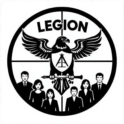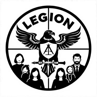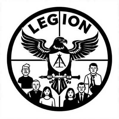 Сделай шеврон защитного (камуфляжного) цвета [Уточнение для #5885933 'Создай реалистичное фото армейского шеврона с этим логотипом [Уточнение для #5885928 'Расширь толщину линии окружности и впиши туда сверху слово LEGION, снизу слово GROUP [Уточнение для #5885919 'В центре орла вместо круга сделай щит, с тем же изображением [Уточнение для #5885915 'Сделай круг на фоне которого находится орел земным шаром [Уточнение для #5885902 'Убери земной шар из центра орла, вместо него помести туда щит с изображением масонского знака (циркуль), а земной шар сдел
