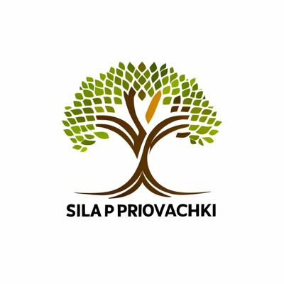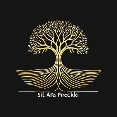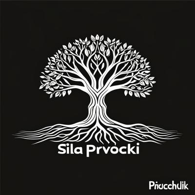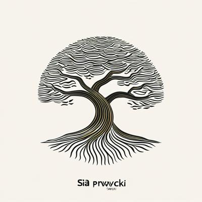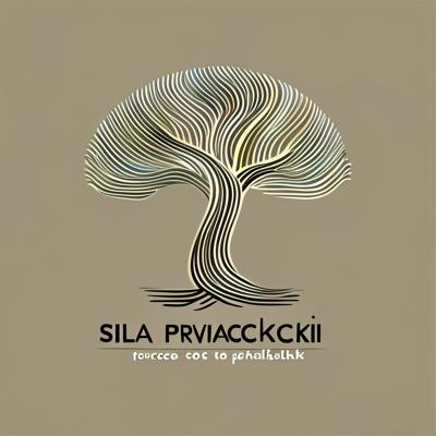 An elegant and conceptual logo for Sila Privychcki (Сила Привычки). The logo shows a single, mighty oak tree. The trunk of the tree is not made of wood, but from many layered, curved lines, resembling the growth rings of a tree or the flow of constant repetition. The roots of the tree are also visible, strong and deep. The style is minimalist line art. Monochromatic dark grey with a single accent color like a strong, earthy green. Emblem style, balanced.