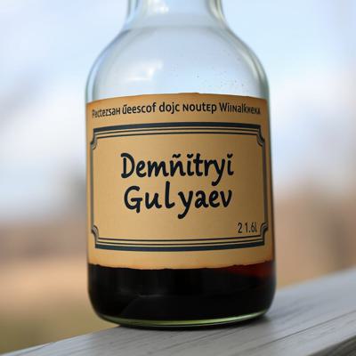 этикетка на бутылку с надписью на русском языке :-Дмитрий Гуляев