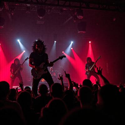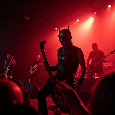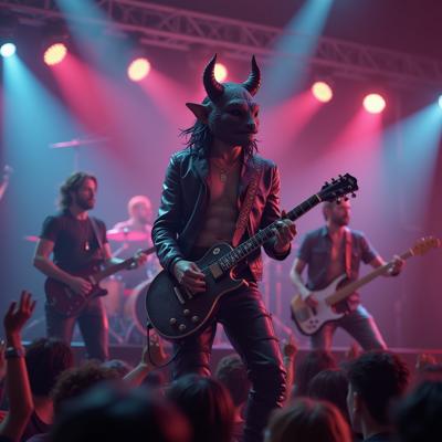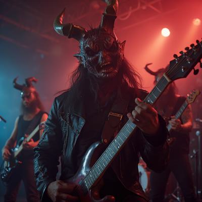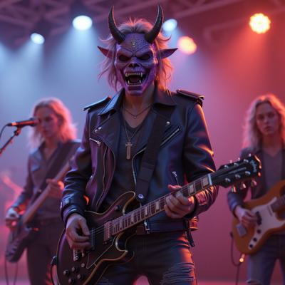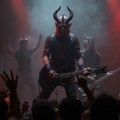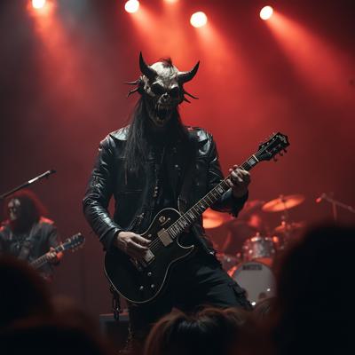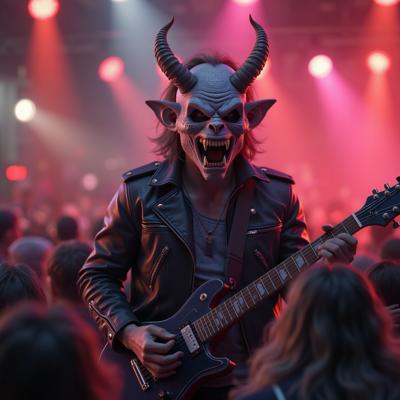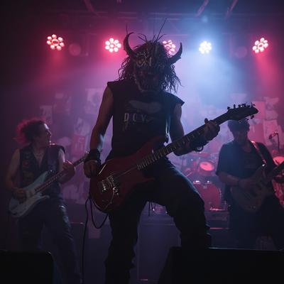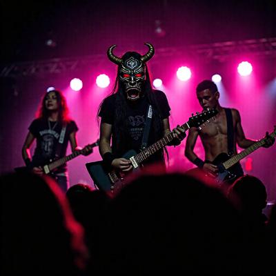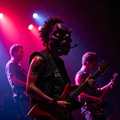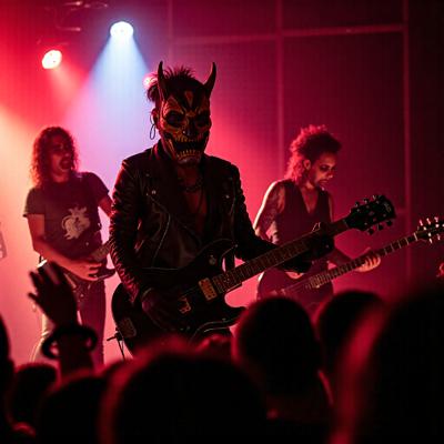 Панк Рок группа их солист в маске демона,выступают на концерте