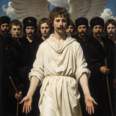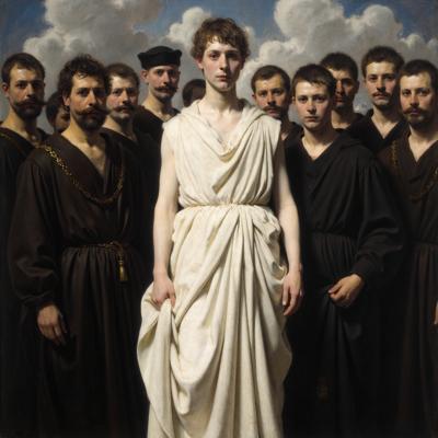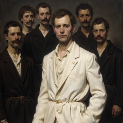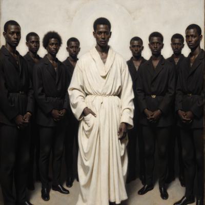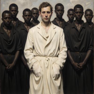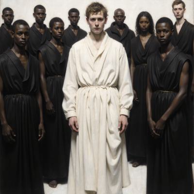 Человек в белом а вокруг все остальные люди черные