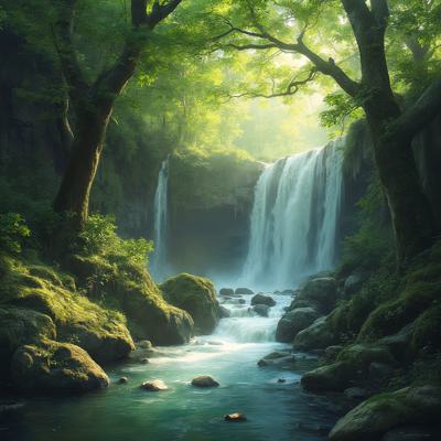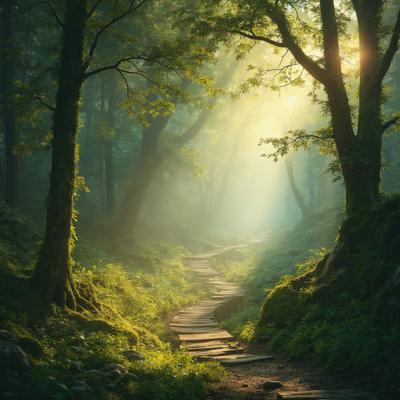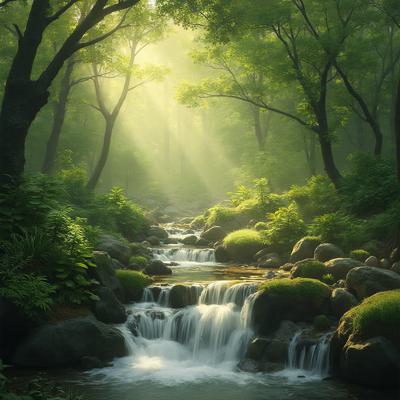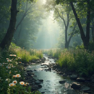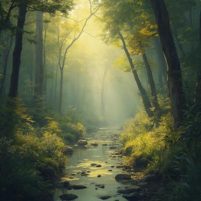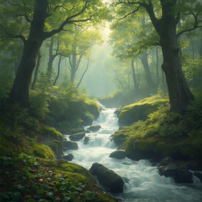 Красивая природа,звучит красивая музыка,ноты льются по природе