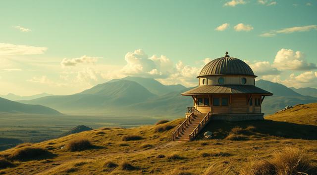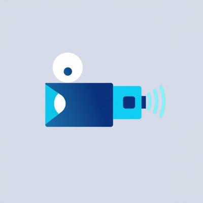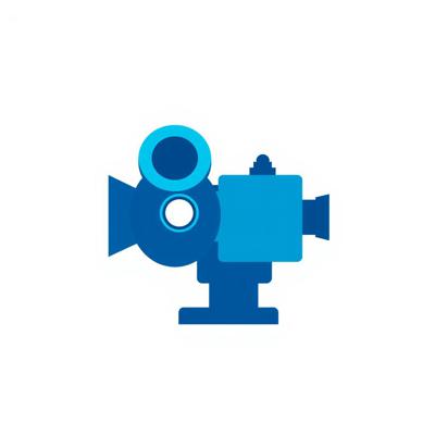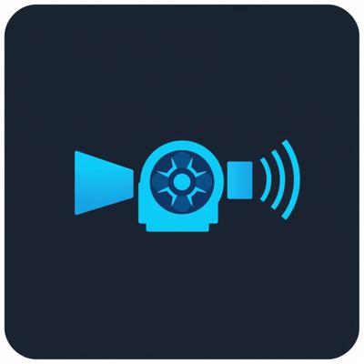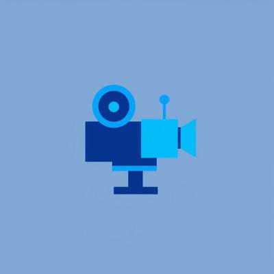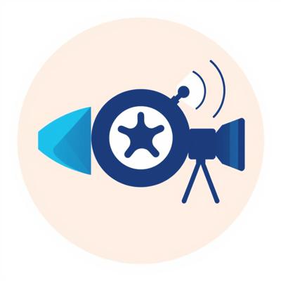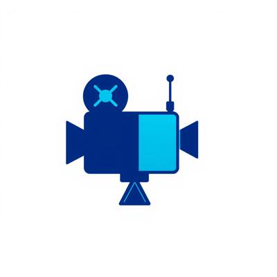 A modern, flat design logo icon, no text. A geometric fusion of a film projector lens and a broadcasting antenna. Clean shapes, two-tone colors (deep blue for cinema, cyan for broadcast). Represents a movie and series community. Isolated on transparent background, scalable.