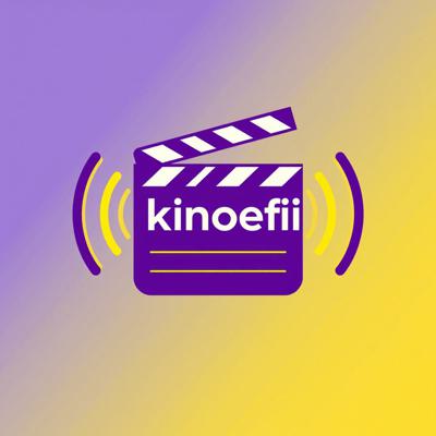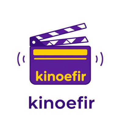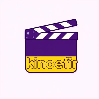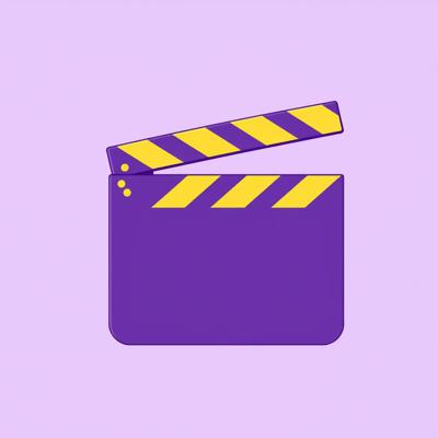 Logo icon for a movie and series community named Киноэфир . The design should show a movie clapperboard with sound waves or signal waves coming out of it. Style: modern, flat, friendly. Colors: purple and yellow. Isolated on transparent background, vector, scalable, perfect for a VK group avatar.