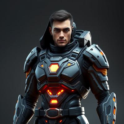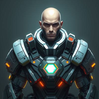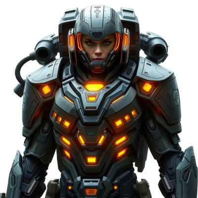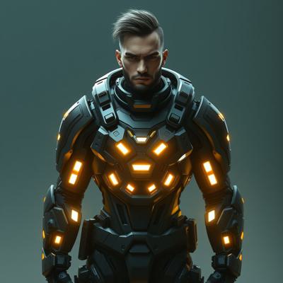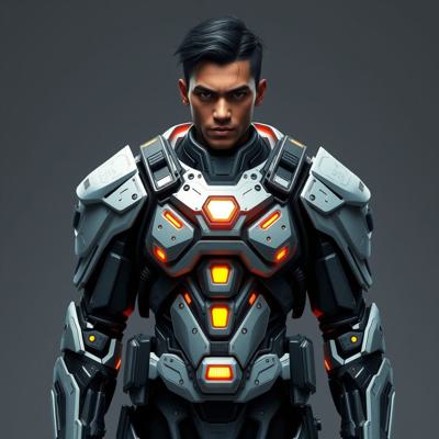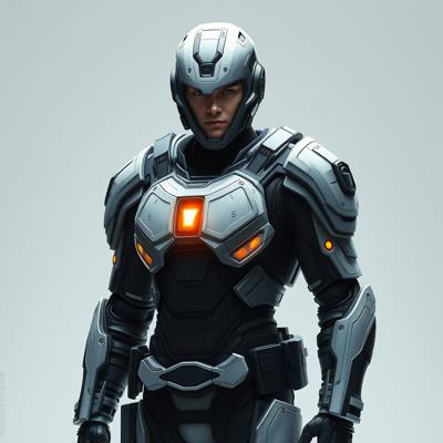 Elite cyberpunk unit, calm and focused expression, balanced armor-tech integration, stable glowing core, realistic proportions, at full height,