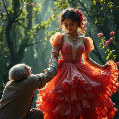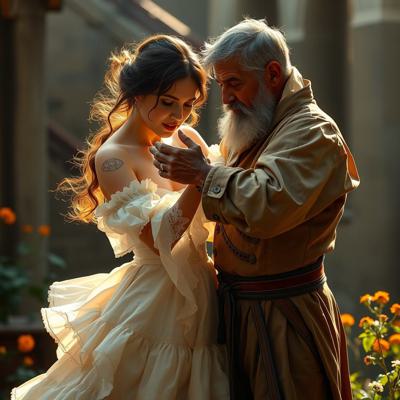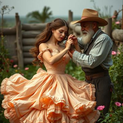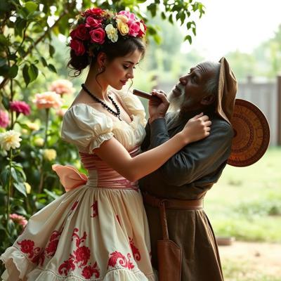 Молодая красавица плантаторша в шикарном кринолине наказывает старого слугу