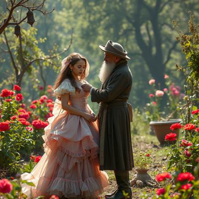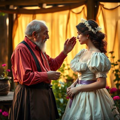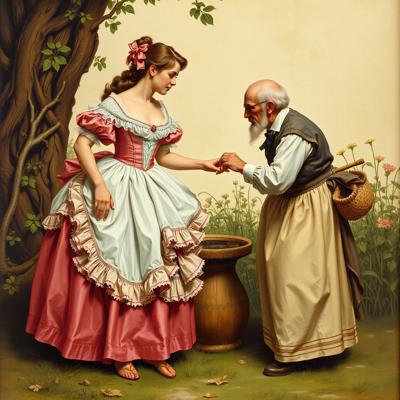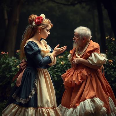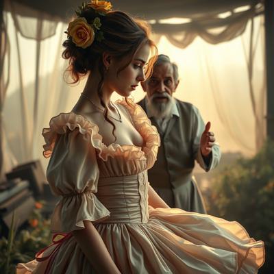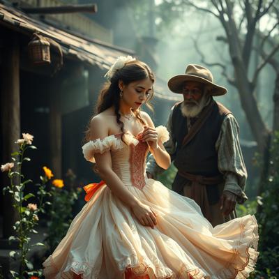 Молодая красавица плантаторша в шикарном кринолине отчитывает старого слугу