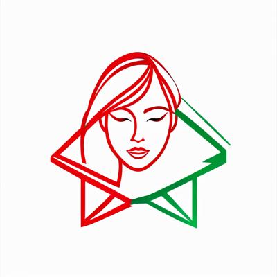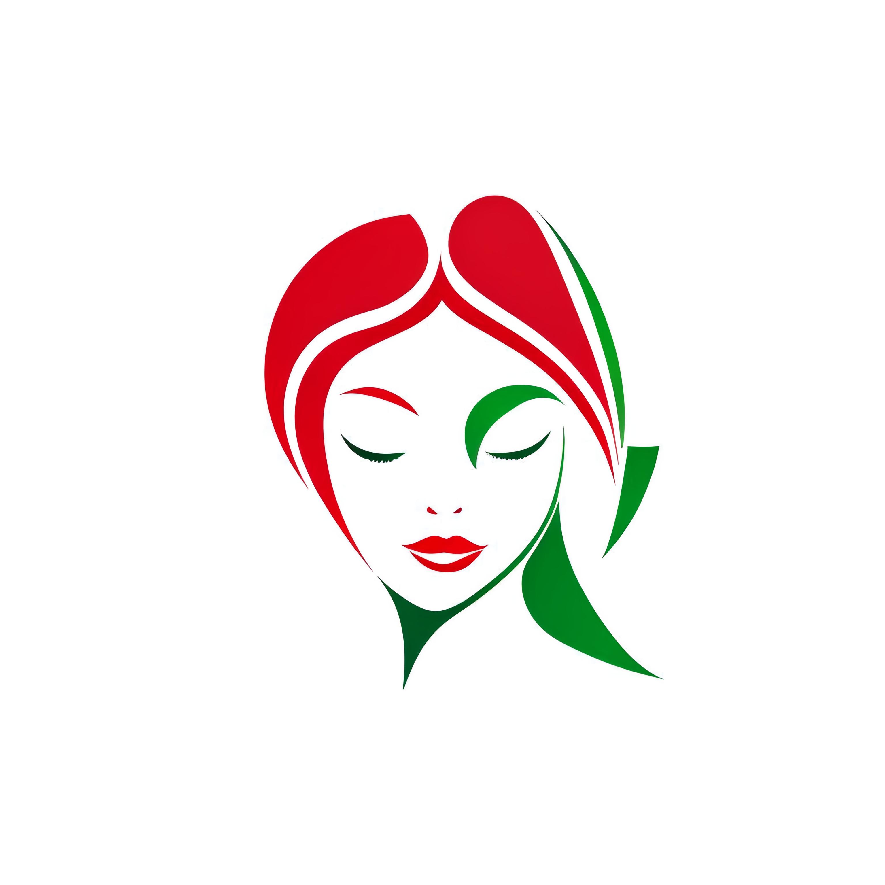 женское лицо, логотип выполнен контурными линиями, в логотипе используются только красный и зеленый цвета [Качество x3 ]