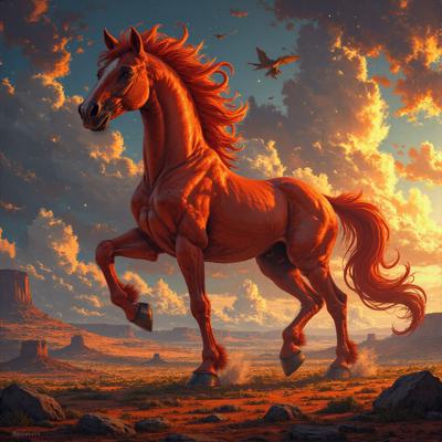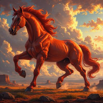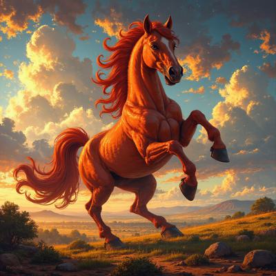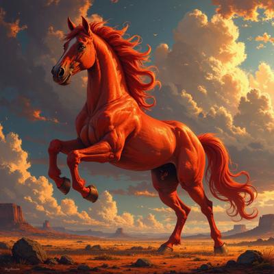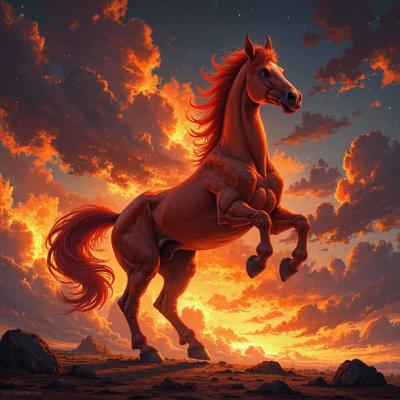 Лошадь стоит на задних копыта, с поднятыми передними копытами [Уточнение для #6019740 'Бегущая красная огненная лошадь ]'