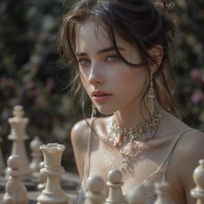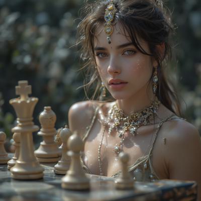 Женщина-ферзь на шахматной доске