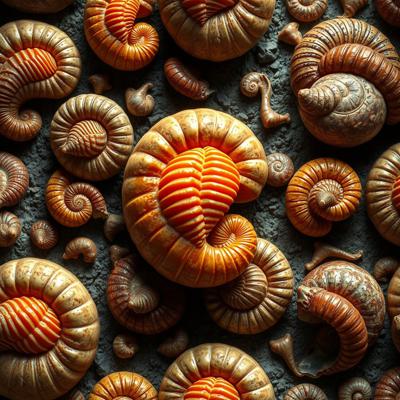симметричный узор паттерн: трилобиты, гастроподы, древние морские обитатели