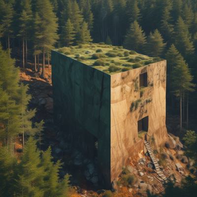 на кубе на одной стороне лес, с другой стороны горы эстетика