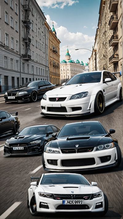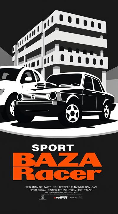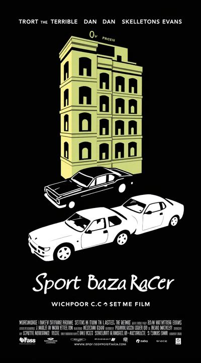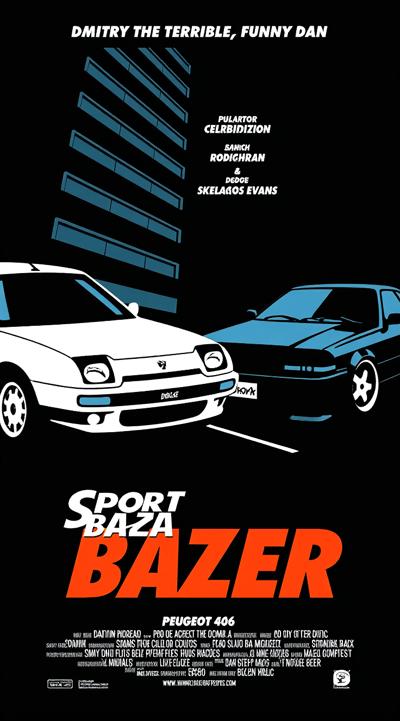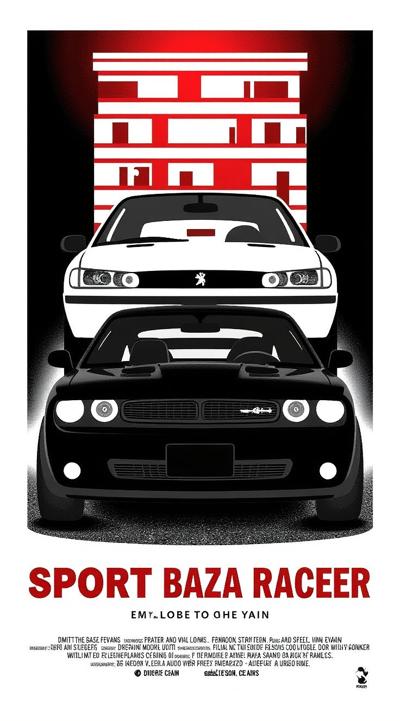 обложка к фильму sport baza racer две машины белая пежо 406 и черный додж стелс на фоне пятиэтажки, фильм в жанре комедия в нем снимались такие актеры как Дмитрий грозный Шутный Дэн и Скелетов Иванс