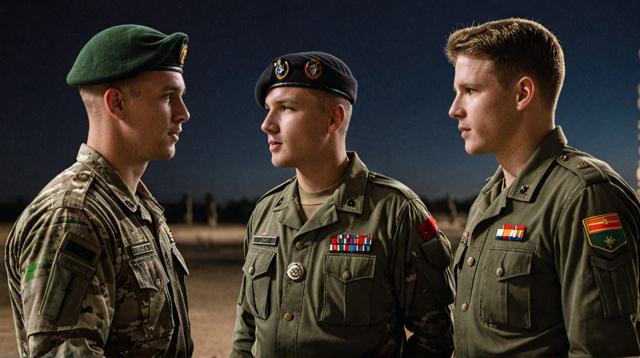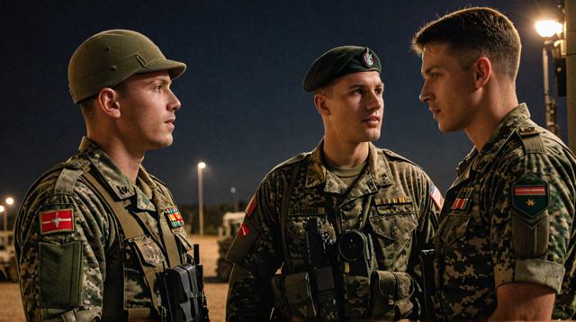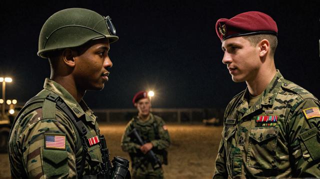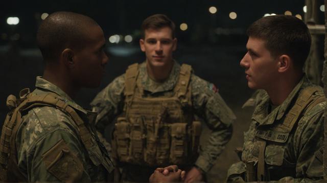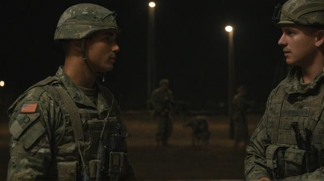 два солдата разных стран стоят ночью друг перед другом и разговаривают по душам
