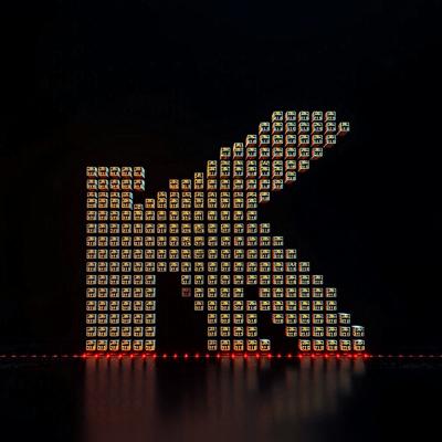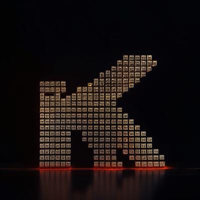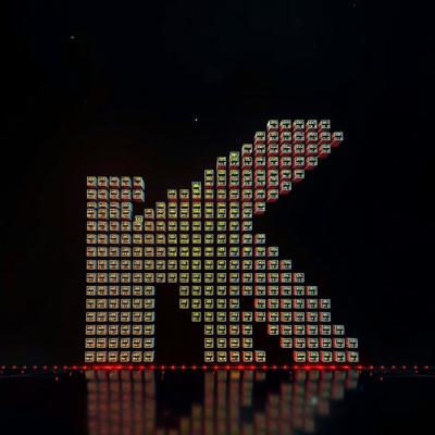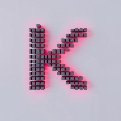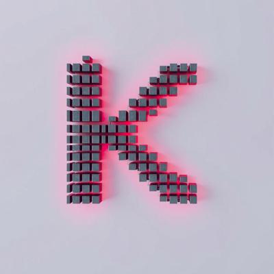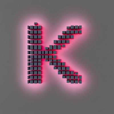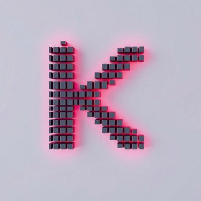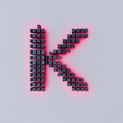 стилизованная буква «К», собранная из маленьких блоков пиктограмм (кванты), образующих упорядоченную решётку матрицу. Блоки плавно переходят в линию путь — символ предсказуемого потока данных и решения проблем. [Вариации (0.5) для #6203853 ]