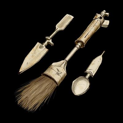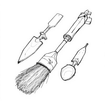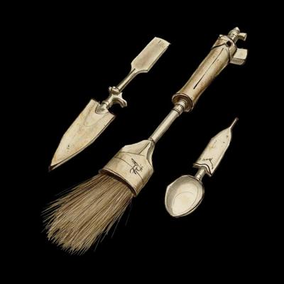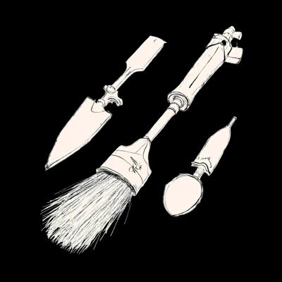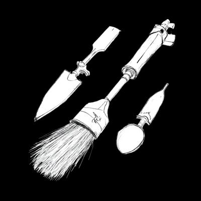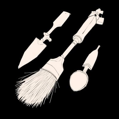 монохромный рисунок, минимум деталей [Уточнение (0.9) для #6204752 'Бежевый рисунок на темном фоне [Уточнение (0.9) для #6204730 'Археологический мастерок, археологическая кисточка и ложка ]']'