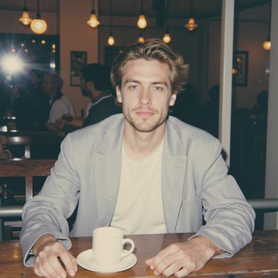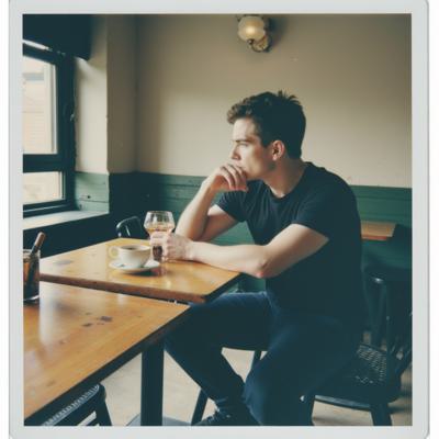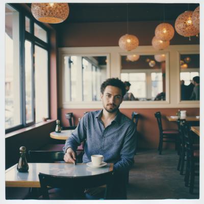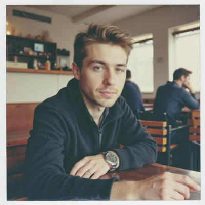 молодой парень 25 лет сидит в кафе за столом
