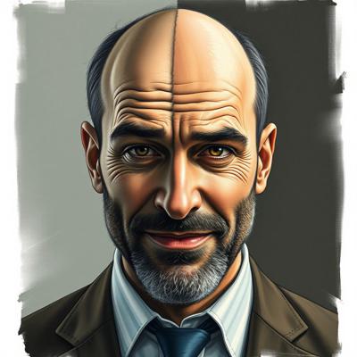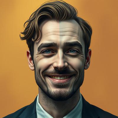Человек, половина лица которого счастлива от возможности быть собой, а другая половина омрачена лицемерией