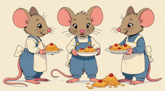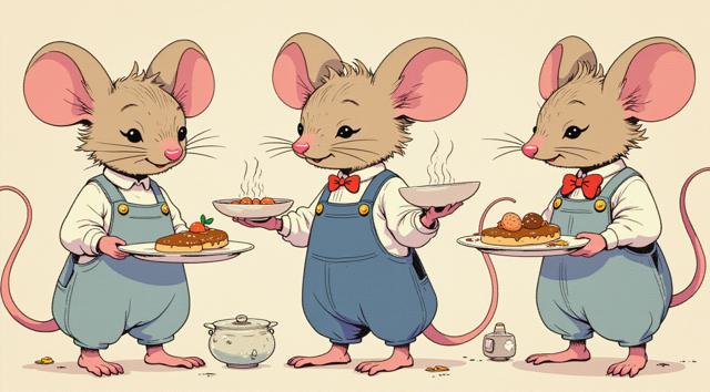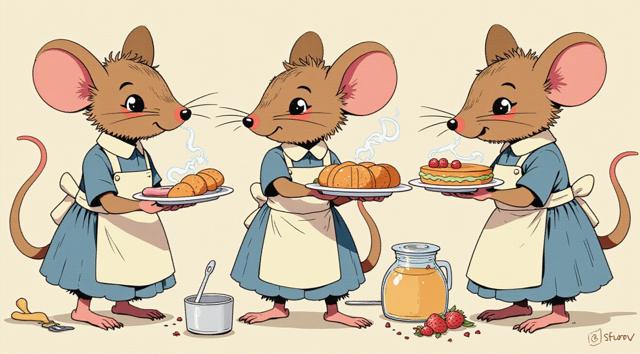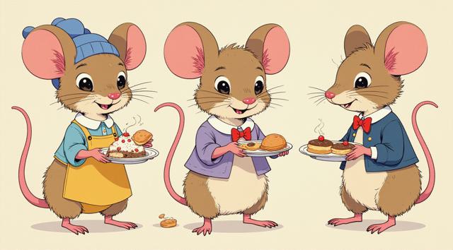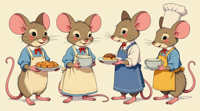Концепт Тедди игрушки Мышка с разных сторон мышка повор держит в руках посуду и делает выпечку винтажная одежда
