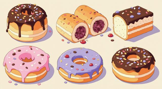 Концепт вкусная выпечка с разных сторон сладости булочки и пончики