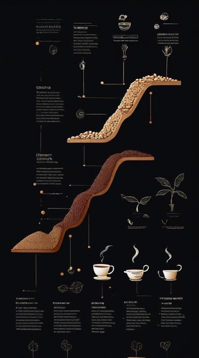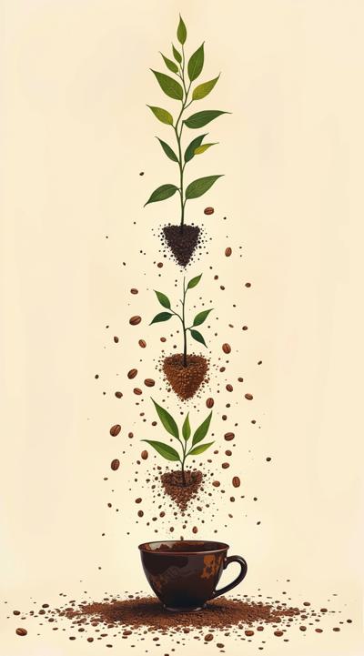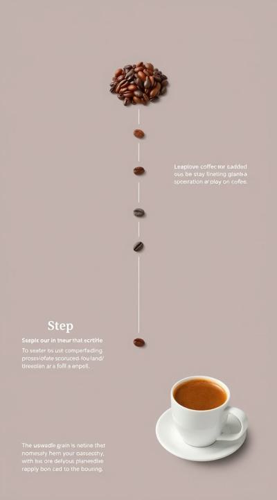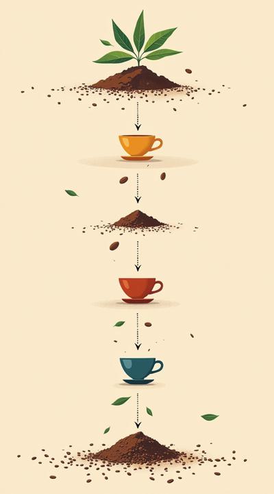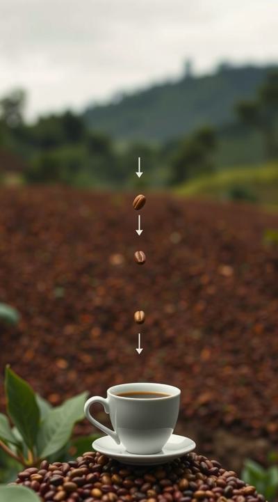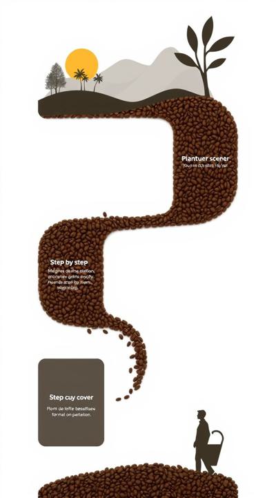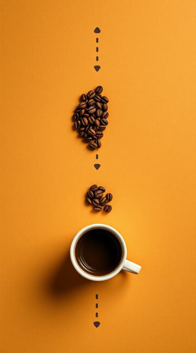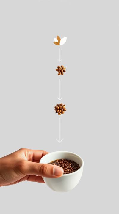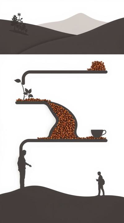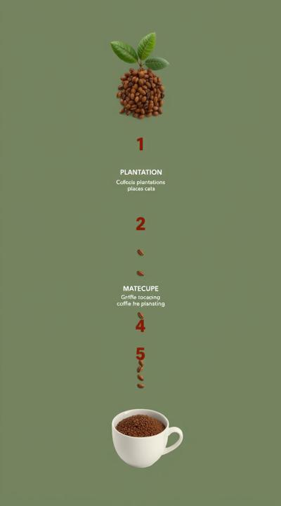 Схема поэтапного движения зерна от кофейной плантации до чашки покупателю, минимализм [Качество x3 ]