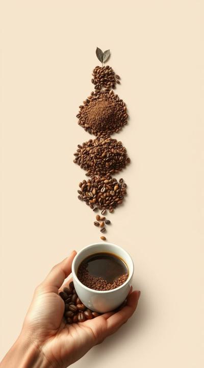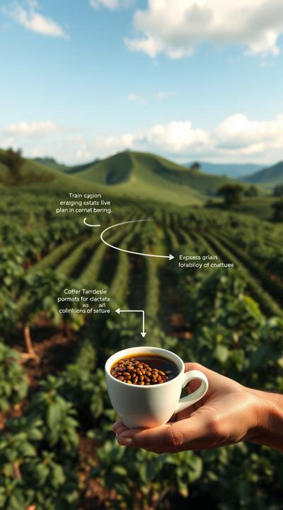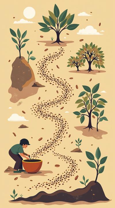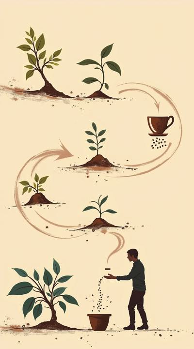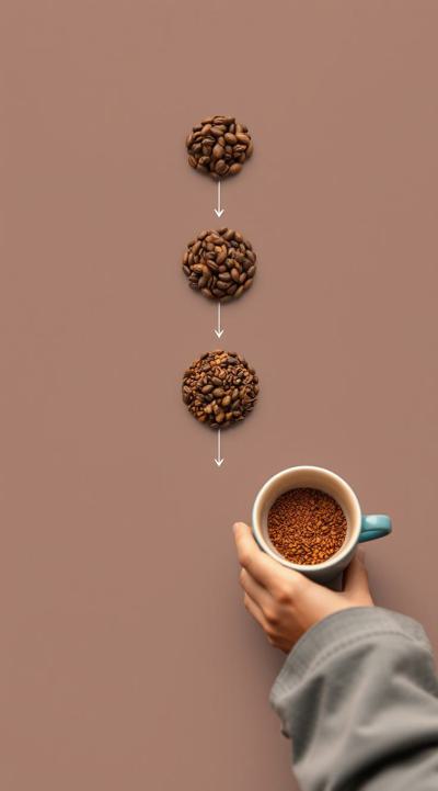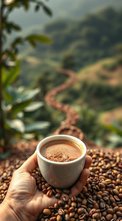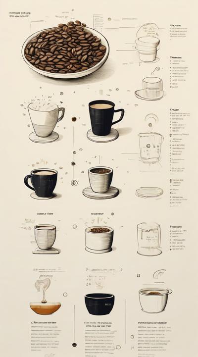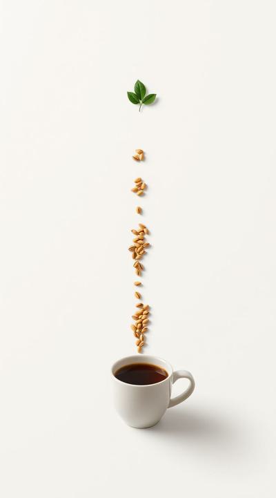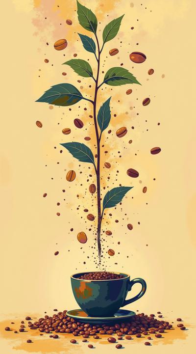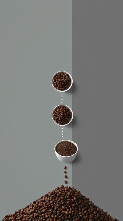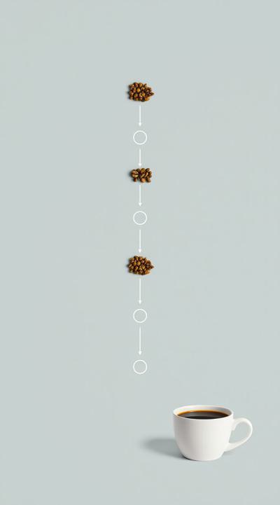Схема поэтапного движения зерна от кофейной плантации до чашки покупателю, минимализм [Качество x3 ]