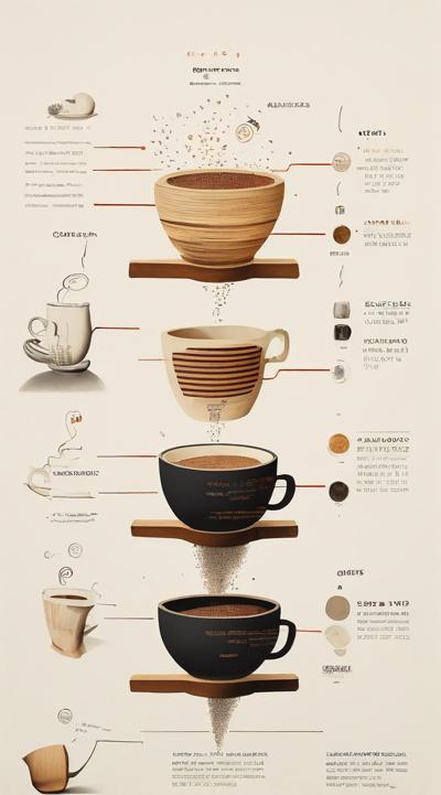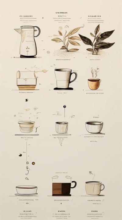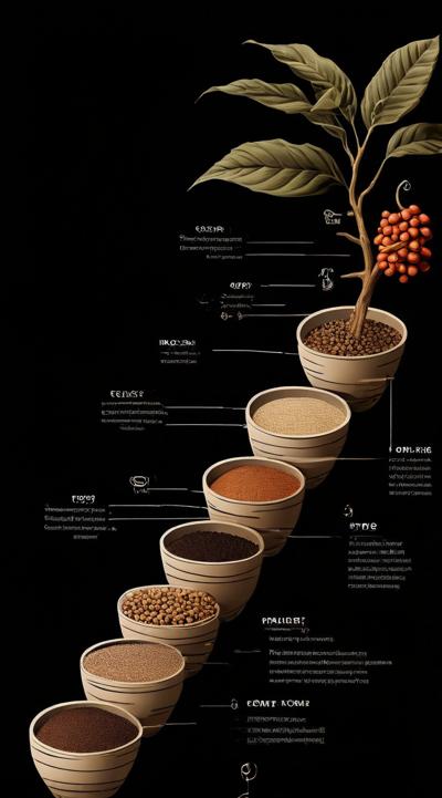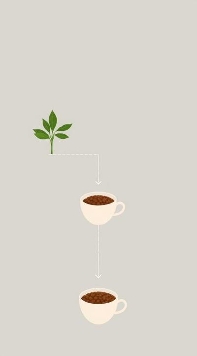 Схема поэтапного движения зерна от кофейной плантации до чашки покупателю, минимализм