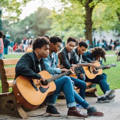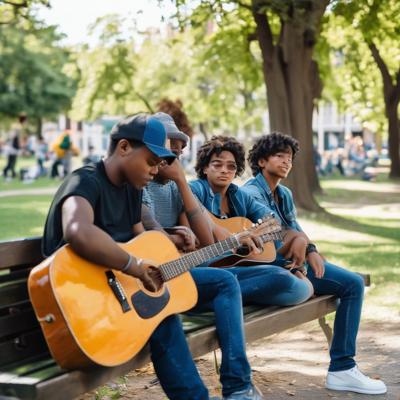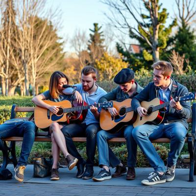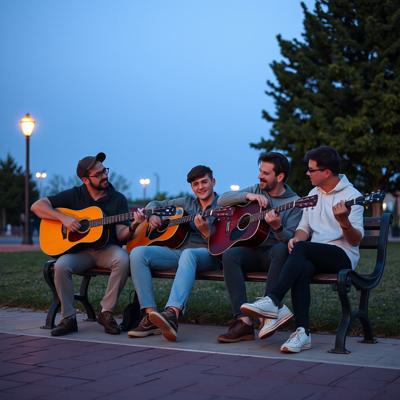 Песни под гитару на лавочке с друзьями