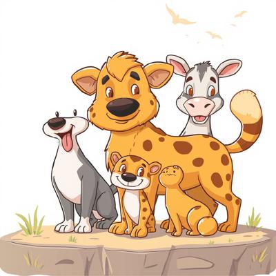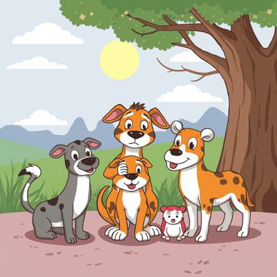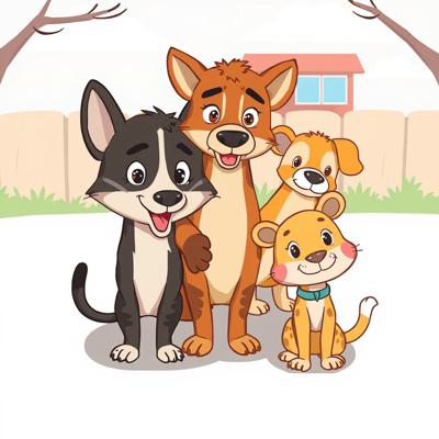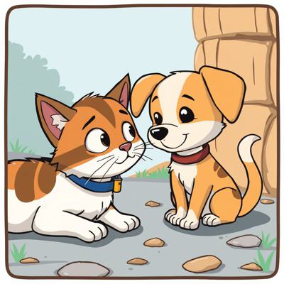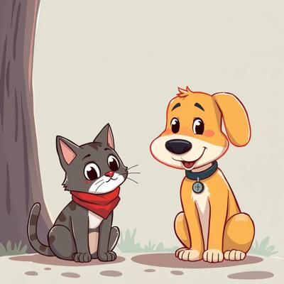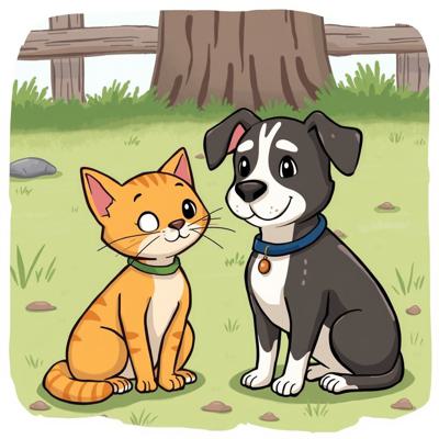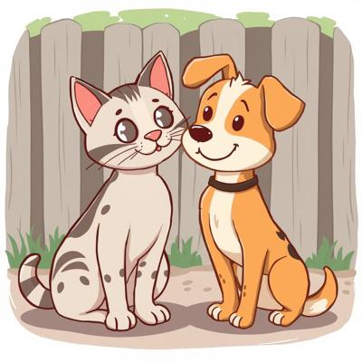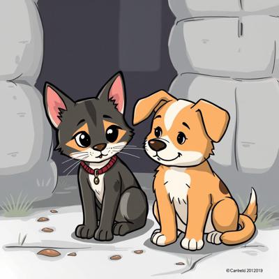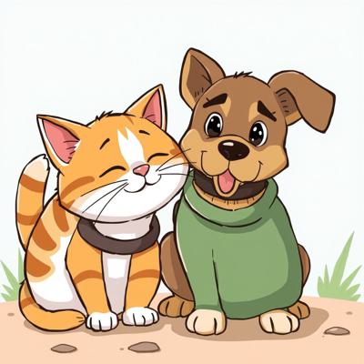 Защита бездомных животных. На картинке котик и песик. Стиль мультяшный [Улучшение лиц + качество x2 ]