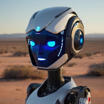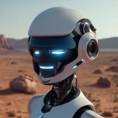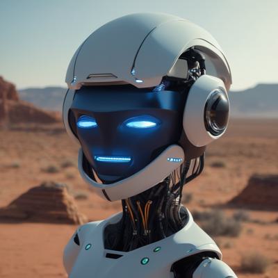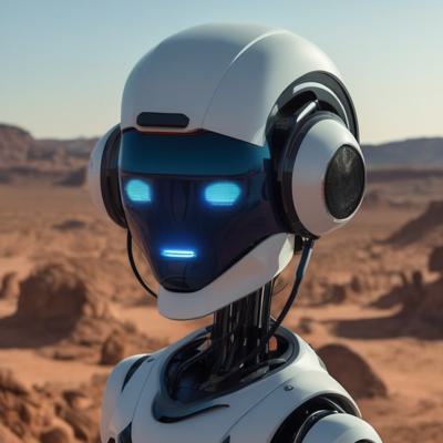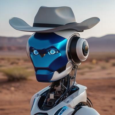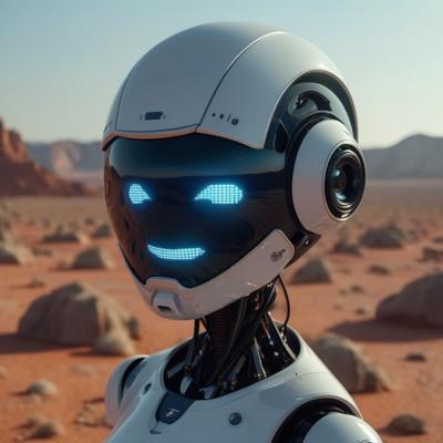 во первых пускай робот будет в ковбойской шляпе, выражение лица оставить таким же и дизайн не менять, во вторых окружающая среда больше напоминает Марс, сделать её более суровой, ядовитой и мрачной [Уточнение для #5688558 'нужно создать изображение, на котором будет изображен робот на подобии Unitree G1 от компании Unitree Robotics, у которого лицо будет из себя представлять буквально пиксельную °-° синего цвета на амолед экране в виде лица, находиться он должен на планете Венера в её суровой ядовитой среде и посреди её мёртвого рельефа и его поза должна быть динамичной словно он исследует планету ]'