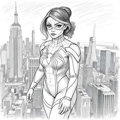Рисунок [Уточнение для #6220837 'Убрать шестой палец на руке [Качество x3 [Уточнение для #6220779 'летит среди небоскрëбов, спецэффекты [Качество x3 [Уточнение (0.5) для #6219232 'сделать глаза менее яркими [Уточнение для #6219225 'Глаза светло-зелëного цвета, неяркие [Уточнение (0.1) для #6219218 'Все волосы шатенистые, но две передние пряди волос русые. [Уточнение (0.5) для #6219192 'Spiderwoman в нежно-розовом костюме со светло-зелëными элементами. Шатенка, пуэрториканка. Marvel. ]']']']']]']]'
