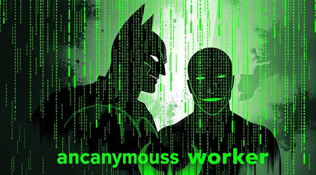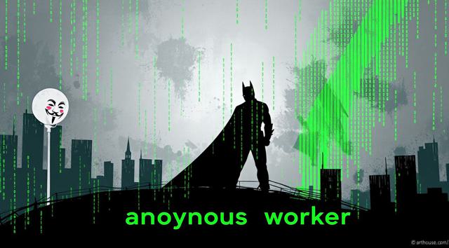 шапка для страницы группы, текст Анонимный работник в стиле бетмена и анонимуса